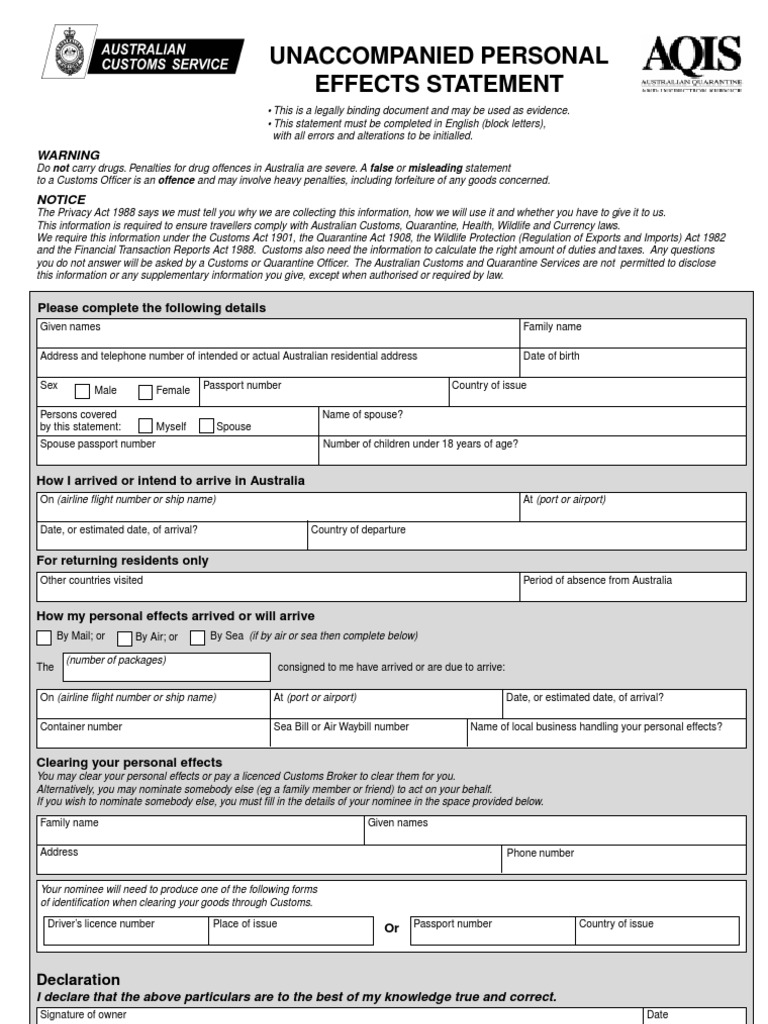 Domestic consignee/ consignor registration no. A customs declaration is a form that lists the details of goods that are being imported or exported when a citizen or visitor enters a customs territory (country's borders). The passenger customs declaration form (hereinafter the declaration) consists of the 8. Customs no.1 declaration of goods 22 movement control by customs k1 (direct other other countries fcz pca import) cca countries k2 (direct export) north. Customs form 3299, declaration for free entry of unaccompanied articles, is used to import personal effects or household items into the united states the video / film declaration form provides u.s.