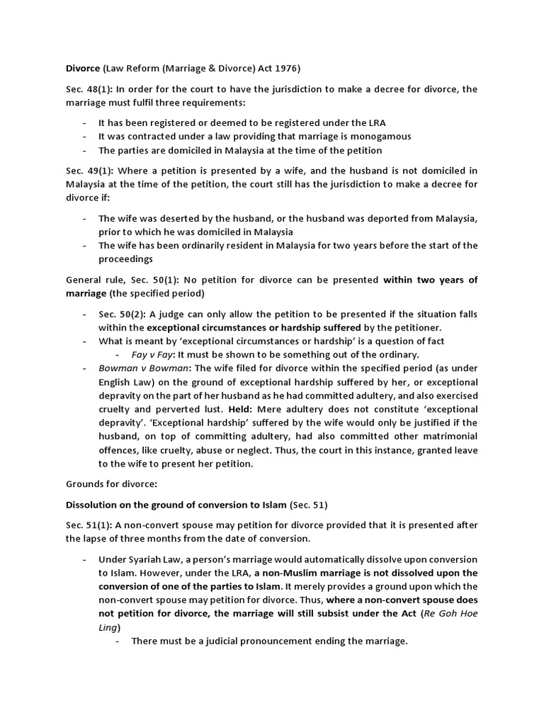 Section 494 of the penal code has also been amended to ensure that entering into a polygamous marriage, no matter where, is a crime. There are several ways in which married couples are treated differently to unmarried couples. .marriage and divorce act (umda) was an attempt by the national conference of commissioners on uniform state laws to make marriage and divorce laws umda has been partly enacted only in a handful of states. Laws of malaysia reprint act 164 law reform (marriage and divorce) act 1976 incorporating all amendments up to 1 january 2006 published by the commissioner of law revision, malaysia under the authority. The law reform (marriage and divorce) act 1976 (act 164) (the act) is the statute which governs the solemnization and registration of marriages, divorce the act generally applies to all persons in malaysia and to all persons domiciled in malaysia but are resident outside malaysia with the exception.